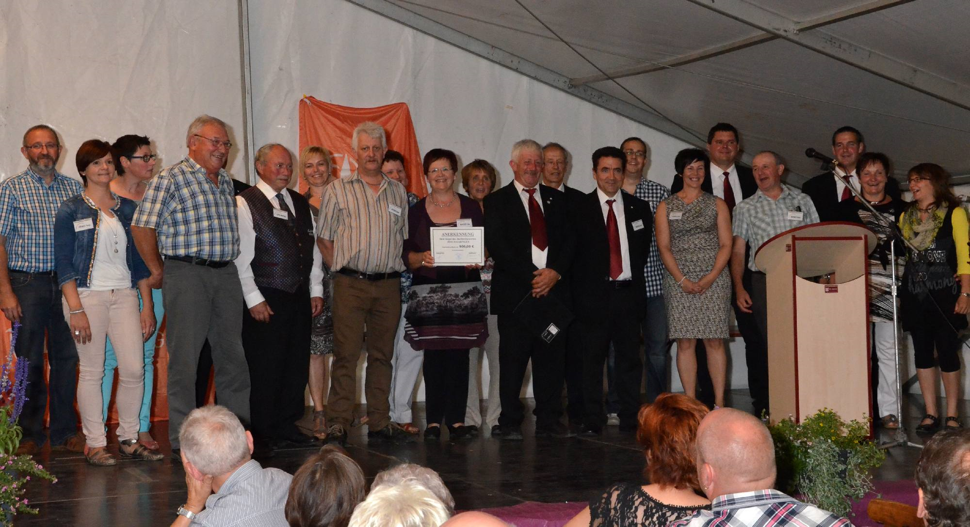 In einem Festzelt hatten sich sowohl politische Honoratioren als auch zahlreiche aktive und in den Dorferneuerungsprozess involvierte Bürger zusammengefunden, um die erfolgreiche Teilnahme an diesem doch bedeutenden Wettbewerb Revue passieren zu lassen.